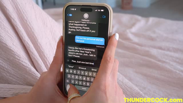 Audrey Bitoni has a gift exchange at her husband's boss' house, her husband can leave work on Xmas, if she unwraps the boss' Thundercock