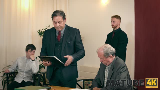 Secretary Take Down:Boss & Friends Tie her up & Fill her Pussy w/ Cum